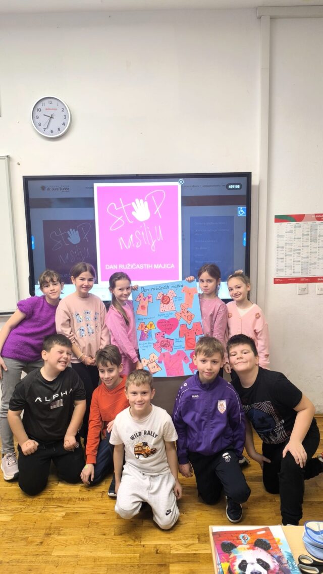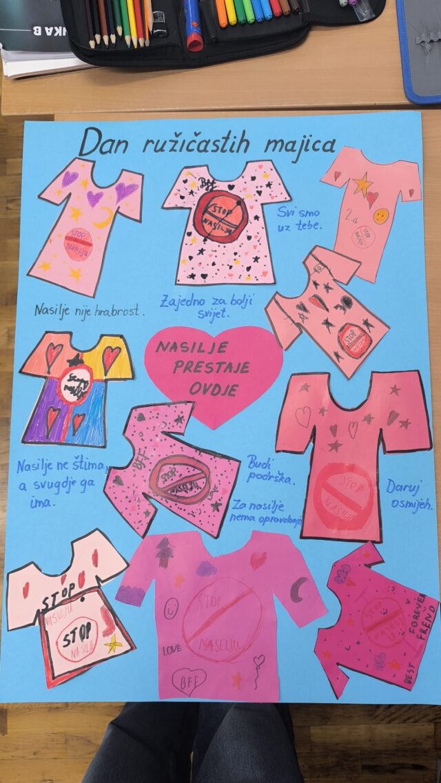 3. školski sat učenici su sa svojim učiteljicama obilježili – Dan ružičastih majica –  razgovarali o vršnjačkom nasilju i rješavanju problema. Učenici su došli u ružičastim majicama u znak potpore vršnjačkom nenasilju.