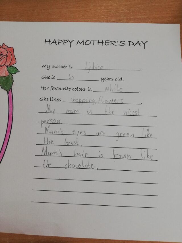 08.05.2025.09.05.2025. NovostiMajčin dan Učenici petih, šestih i sedmih razreda su na satu Engleskog jezika s profesoricom Sanjom Lončar obilježili Majčin dan.