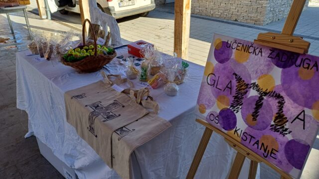 Učenice naše Učeničke zadruge “Glama” provele su u petak 11. travnja radno jutro na Eko-Tržnici u Kistanjama. Ovo je prvo prodajno djelovanje naše učeničke zadruge izvan prostora Škole i svi članovi, zajedno s voditeljicom Ana-Marijom Trevižan Vujčić, zadovoljni su postignutim. Preostali proizvodi opet će se prodavati na malom sajmu u školi, 15. travnja od 13,00-14,00 sati.